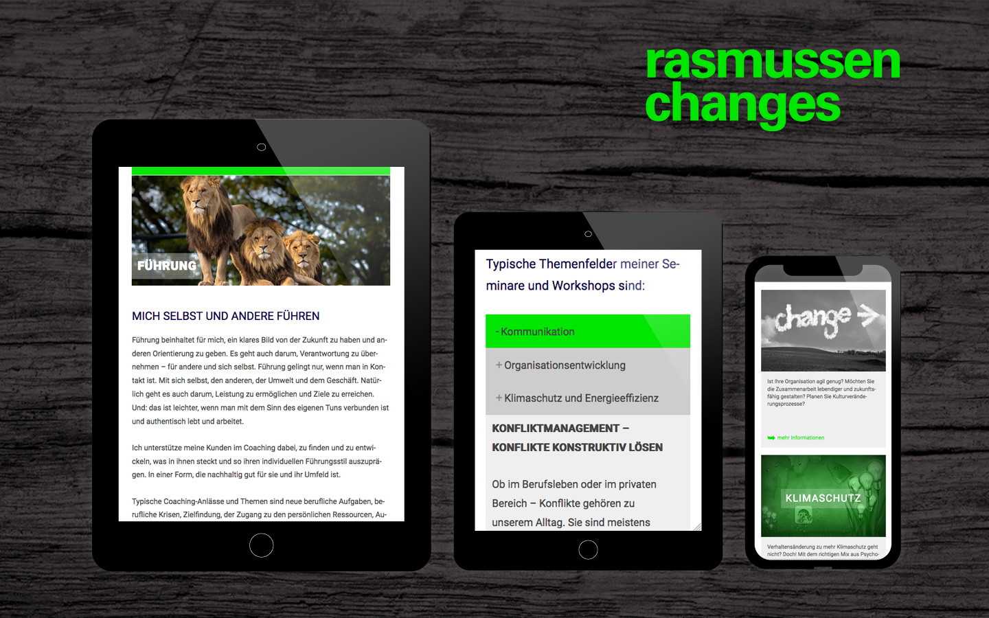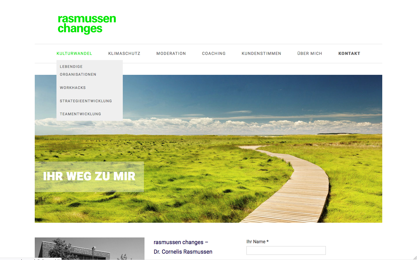 Neue Website in Sachen Change-Management, Coaching & Klimaschutz für Unternehmen für Conelis Rasmussen – rasmussen changes.